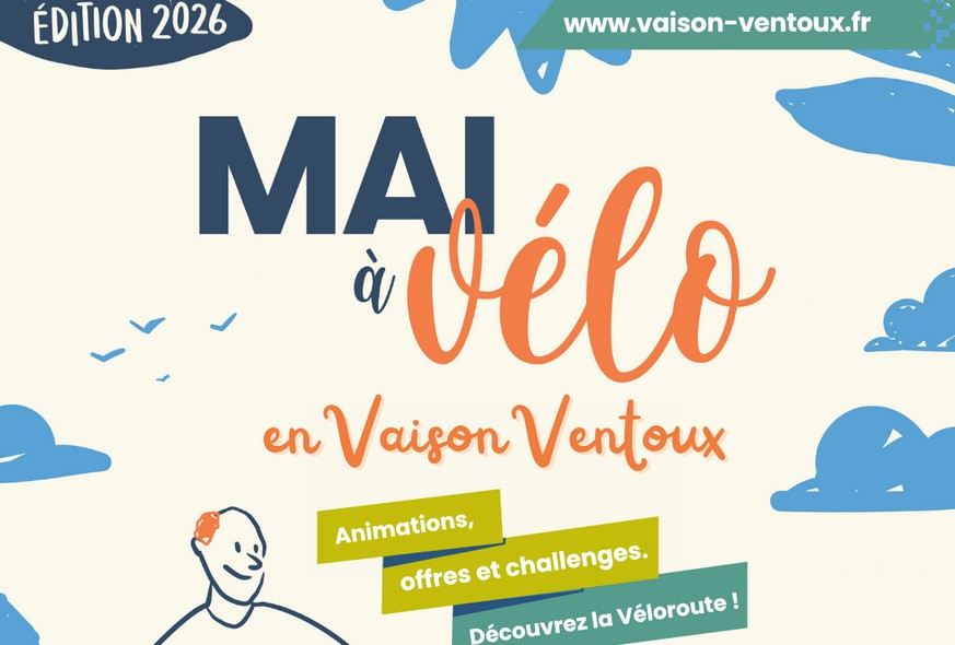 Du 1er au 30 mai, la Communauté de communes Vaison Ventoux et ses partenaires s’engagent dans le cadre de la manifestation nationale “Mai à vélo ” pour inciter le plus grand nombre à rejoindre la grande communauté des cyclistes. Challenges, animations, offres spéciales, sorties et découvertes : suivez le programme !