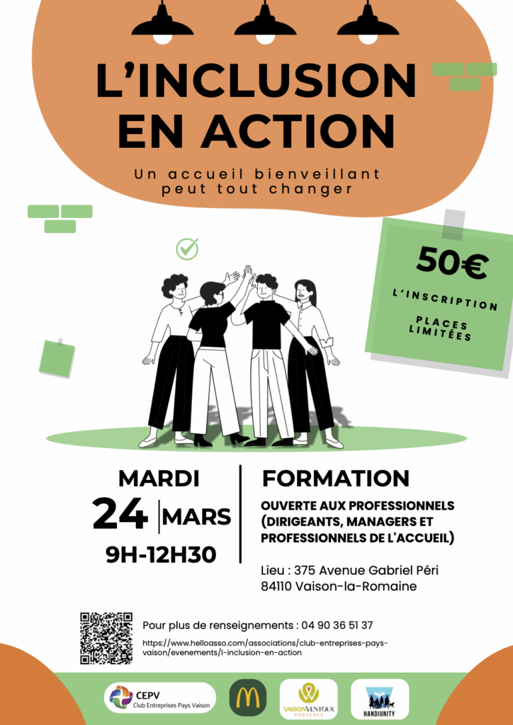 Le Club des Entreprises Vaison Ventoux, aux côtés de McDonald’s Vaison-la-Romaine, de l’Office de Tourisme Vaison Ventoux et de l’association HandiUnity, porte depuis un an un projet territorial ambitieux : faire de l’inclusion une réalité concrète dans nos entreprises.