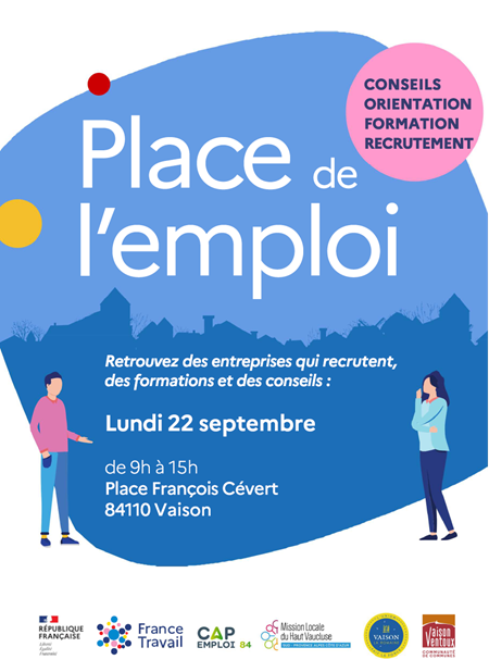 France Travail, en partenariat avec la Communauté de communes Vaison Ventoux, vous donne rendez-vous lundi 22 septembre de 9h à 15h, place François Cevert, pour trouver des entreprises qui recrutent, des formations et des conseils.